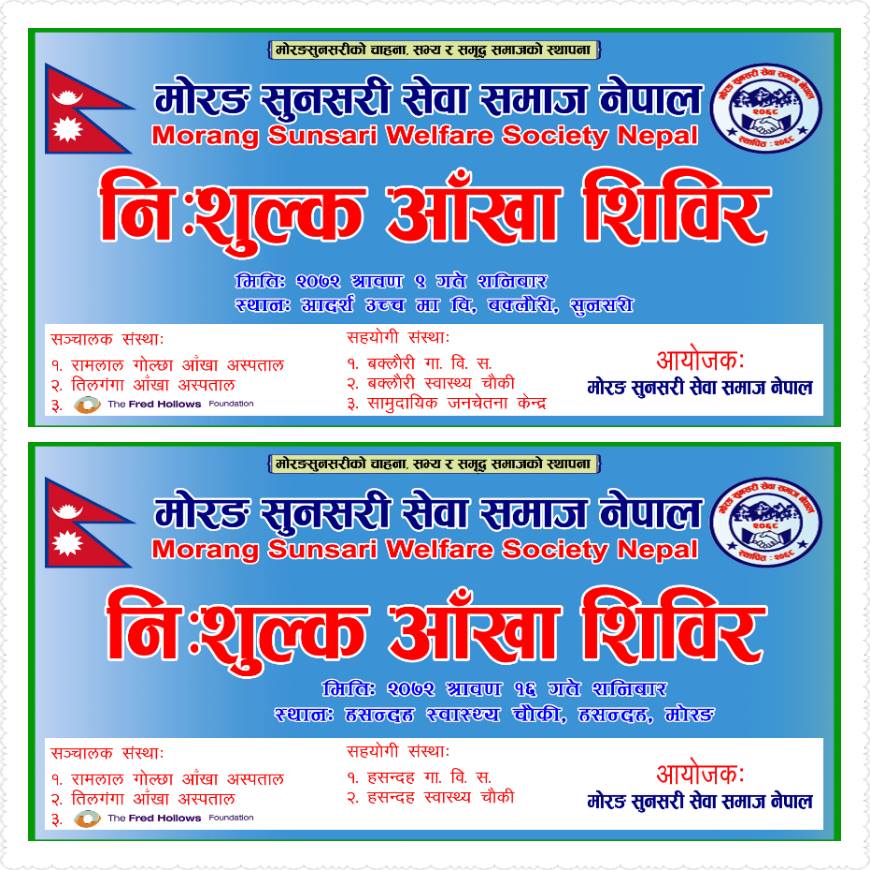 इटहरी । “मोरङसुनसरीको चाहना, सभ्य र समृद्ध समाजको स्थापना” भन्ने मूलमन्त्रका साथ स्थापित मोरङसुनसरी सेवा समाजको सामाजिक अभियान ध्यान गाउँ केन्दीत बनेको छ । आँखा शिविर सञ्चालन गरेर गाउँ गाउँका गरिब, दुःखीहरुको सेवामा समर्पित मोसु नेपालले सुनसरीको बक्लौरीस्थित आदर्श उच्च ...